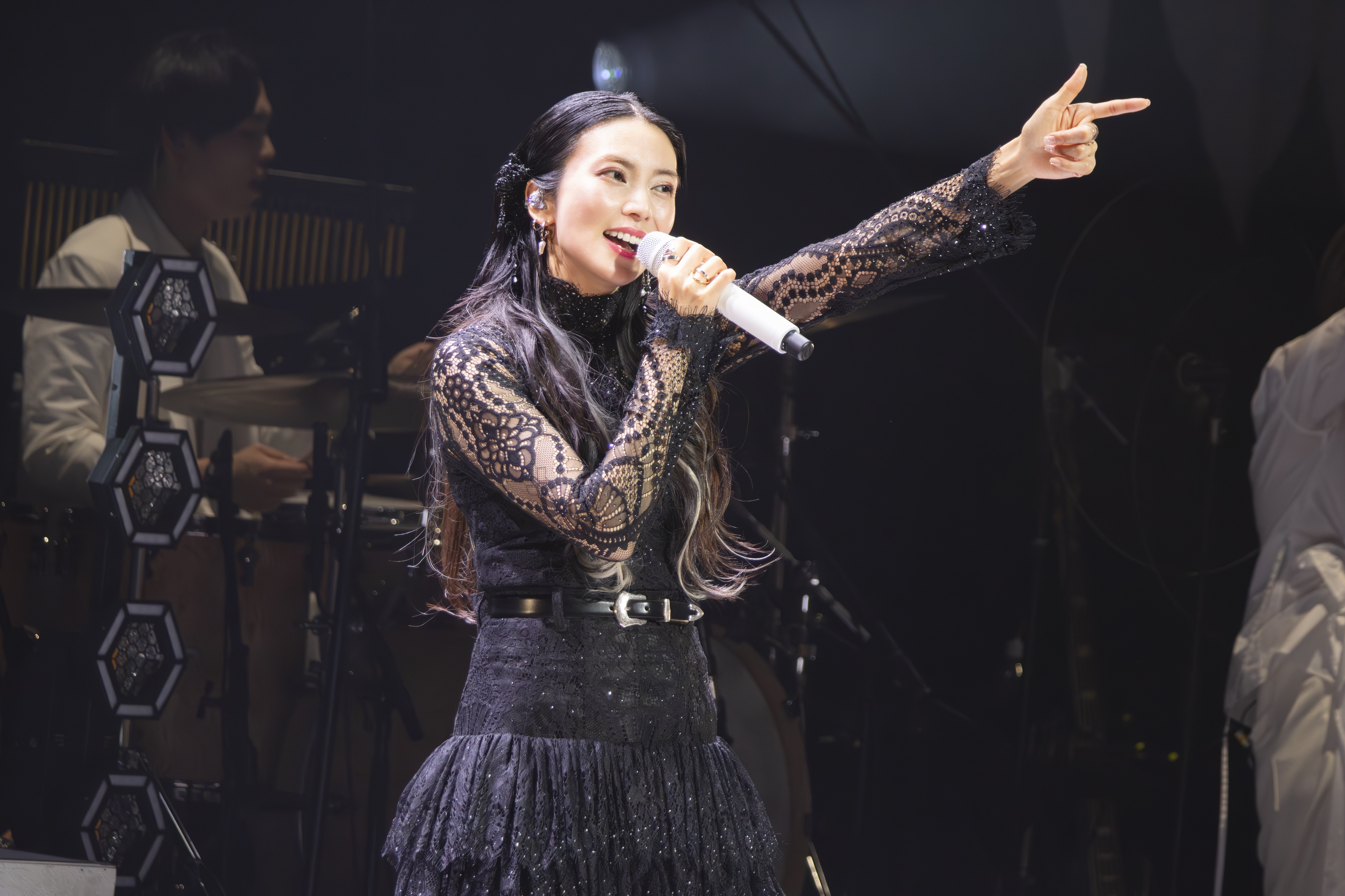 神秘的で、どこか中性的でもあるグレーの衣装を纏った柴咲は、誰もが知る名曲「月のしずく」「泪月 -oboro- <2025 ver.>」を心を込めて歌い上げた。